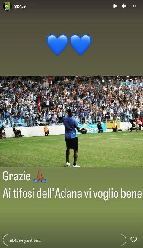 İtalyan santrfor ayrılığın ardından taraftarlara mesaj gönderdi ve "Teşekkürler Adana Demirspor taraftarları, sizi seviyorum." dedi.