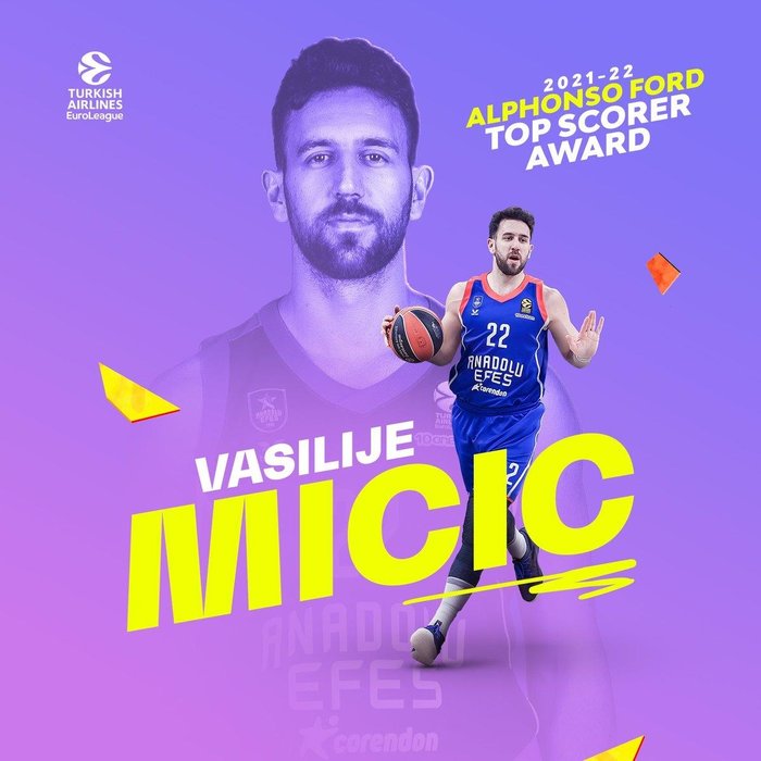 THY EuroLeague'de Final-Four'a kalan Anadolu Efes'in yıldız oyuncusu Micic, sezonu sayı kralı olarak tamamladı. 28 yaşındaki basketbolcu, ligde en skorer oyuncuya verilen 'Alfonso Ford' ödülünün de sahibi oldu.