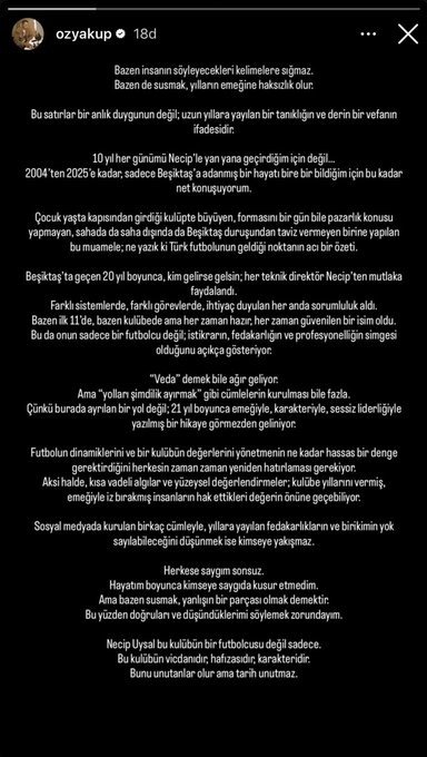 Çocuk yaşta kapısından girdiği kulüpte büyüyen, formasını bir gün bile pazarlık konusu yapmayan, sahada da saha dışında da Beşiktaş duruşundan taviz vermeyen birine yapılan bu muamele; ne yazık ki Türk futbolunun geldiği noktanın acı bir özetidir.