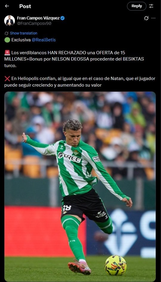 Betis, oyuncunun gelişimini sürdürerek değerini artırabileceğine inanması sebebiyle, Beşiktaş'ın yaptığı teklifi reddetti.