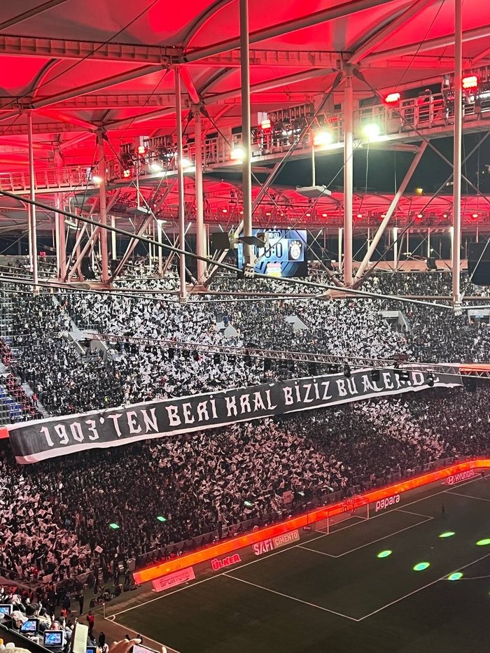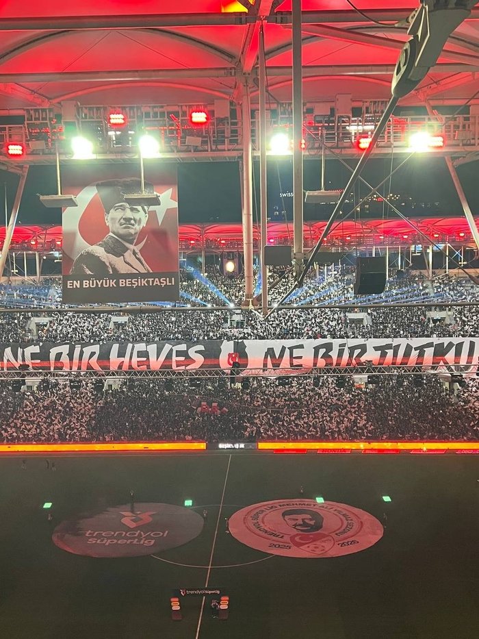 Beşiktaşlı taraftarların yaptığı koreografide "1903'ten beri kral biziz bu alemde! Ne bir heves ne bir tutku!" ifadeleri yer aldı.