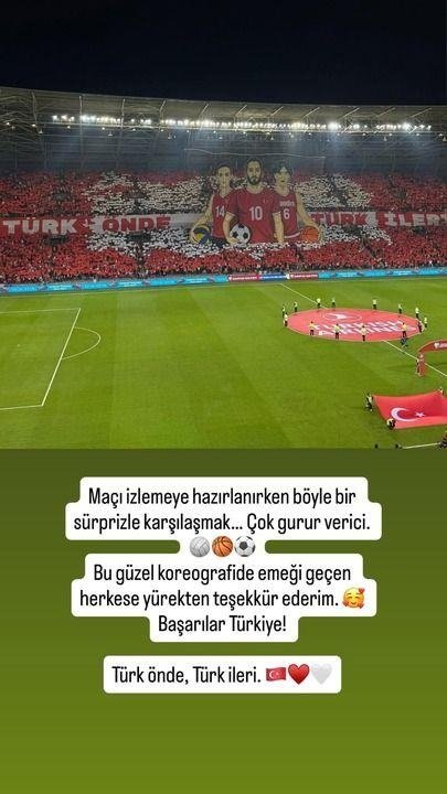A Milli Futbol Takım'ımız Kocaeli'de Dünya Kupası Elemelerinde Gürcistan'ı 4-1 ile geçerken maç öncesi Kocaeli tribünlerinde sergilenen koreografi büyük beğeni topladı. Hazırlanan pankartta Eda Erdem, Cedi Osman ve Hakan Çalhanoğlu'na yer verildi.