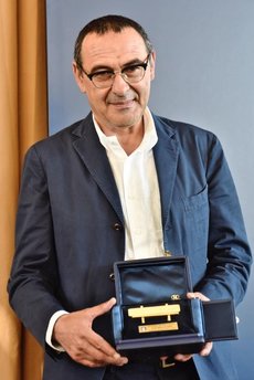 Napoli'nin başına geçen sezon geçmesine rağmen sezonu ikinci sırada bitiren Sarri, birincilik ödülünü, İtalya Futbol Federasyonu Başkanı Carlo Tavecchio'nun elinden aldı.