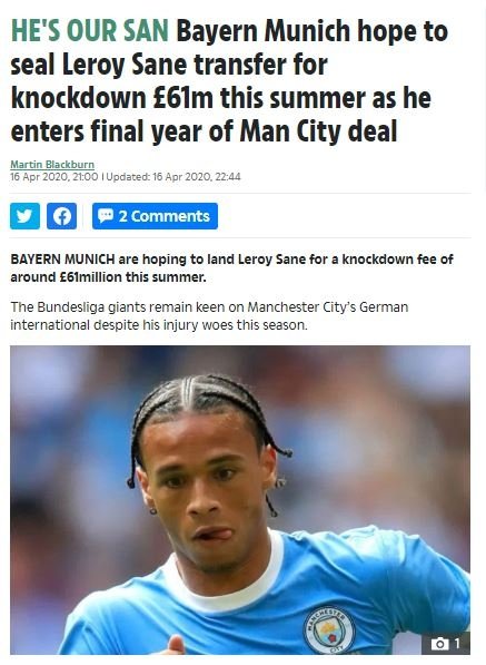İngiltere'nin önde gelen gazetelerinden TheSun'da yer alan habere göre, Alman kanat oyuncusu için geçtiğimiz sezon 100-120 milyon Sterlin arası bir teklif götüren Bayern Münih, Sane'nin sezon başında yaşadığı diz sakatlığının ardından bu teklifi 60 milyon Sterlin civarına kadar düşürdü. İngiliz ekibiyle 1 senelik kontratı kalan Sane'nin de Bayern Münih'te forma giymeye sıcak baktığı biliniyor. Ancak Manchester City'nin İspanyol çalıştırıcı Pep Guardiola da Sane'den vazgeçmiş değil.