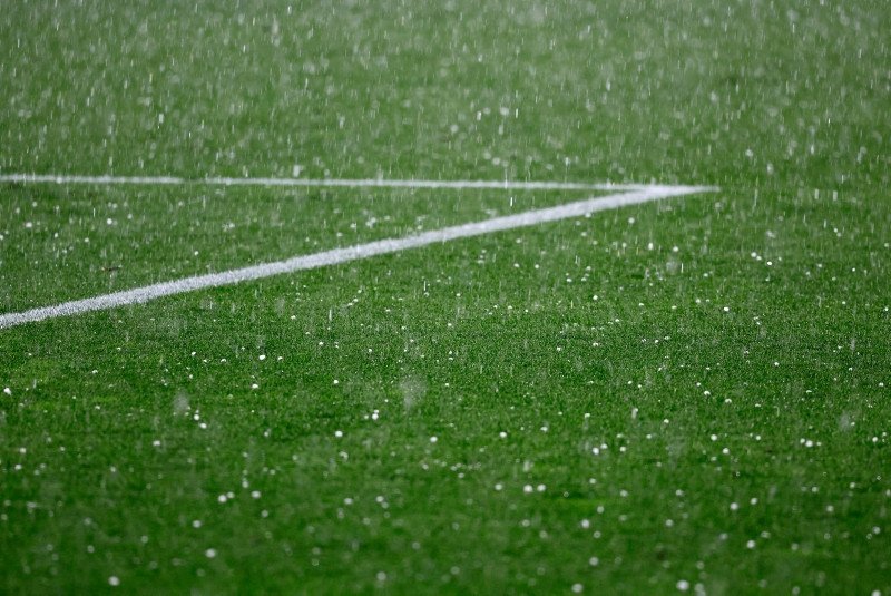 Bir süre yedek kulübelerinin önünde bekleyen hakem ekibi ve futbolcular, yağışın daha da şiddetlenmesi nedeniyle soyunma odasına gitti.