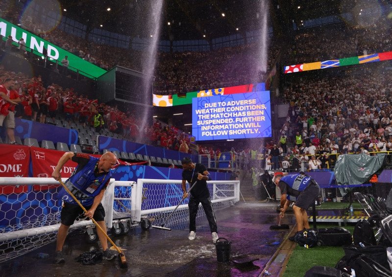 2024 Avrupa Futbol Şampiyonası (EURO 2024) son 16 turunda Almanya ile Danimarka arasında oynanan müsabakada şiddetli yağış maçın durmasına neden oldu.