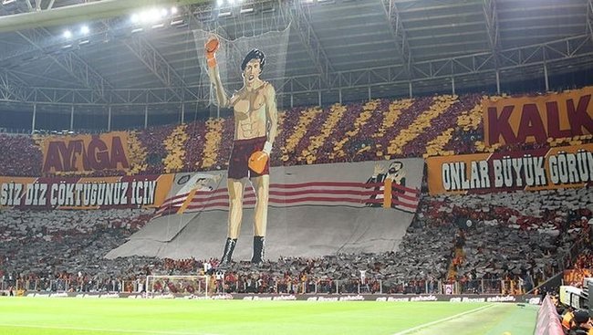 Sarı-lacivertlilerin, G.Saraylıların daha önce yaptığı Rocky'li koreografiye Muhammed Ali'yle cevap vermesi dikkat çekti.