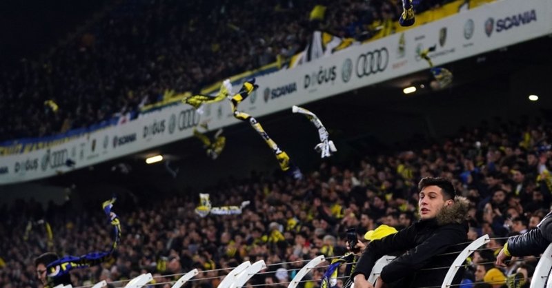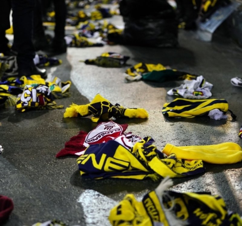 Mücadele öncesi sarı-lacivertli taraftarla atkılarını depremzedelere destek için sahaya atıldı.
