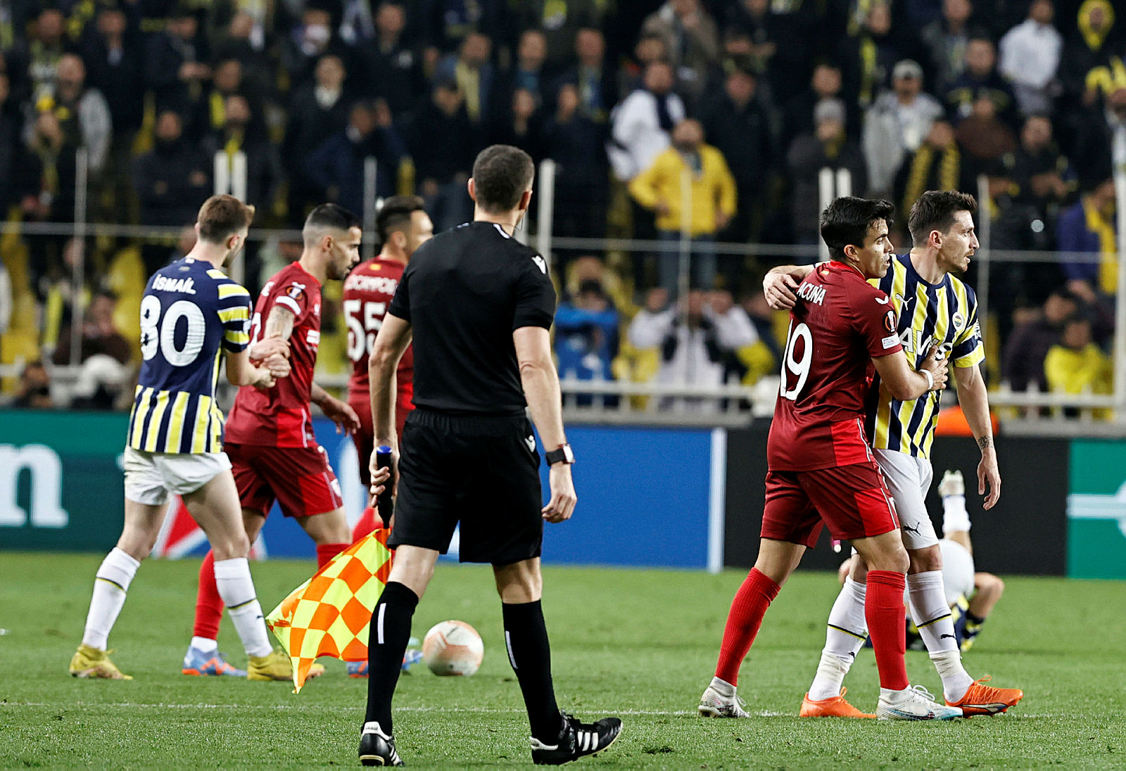 Sarı-lacivertli takımda, Belçikalı futbolcu Michy Batshuayi ise sakatlanarak oyunu terk etmek zorunda kalmıştı.