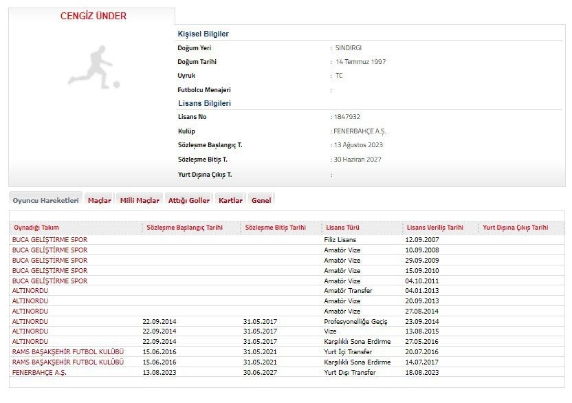 26 yaşındaki milli futbolcu, kariyerine Bucaspor altyapısında başlamıştı. Altınordu, Başakşehir, Roma, Leicester City ve Marsilya formaları giyen Cengiz Ünder, sezon başında Fransız ekibinden Fenerbahçe'ye transfer oldu.