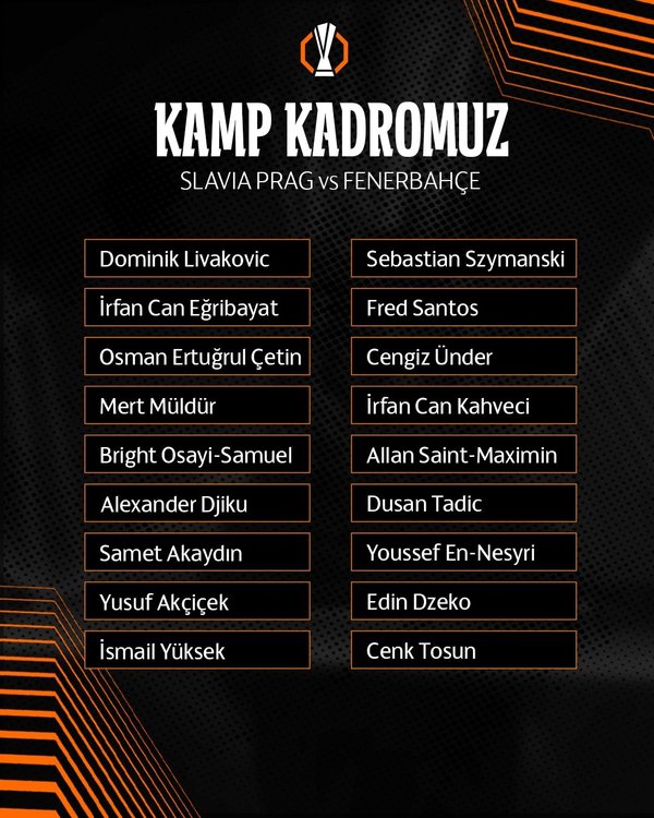 Fenerbahçe'nin Slavia Prag maçının kamp kadrosu şu şekilde: