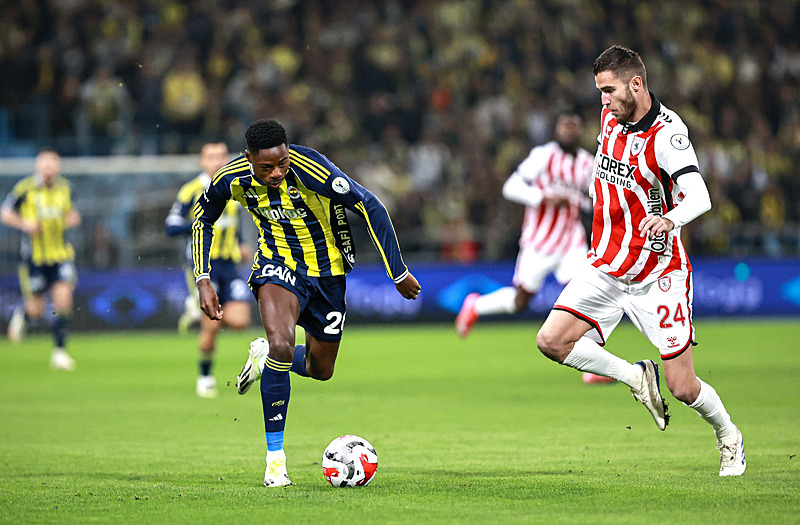 Fenerbahçe maça adeta golle başladı. Musaba ile sağ kanat sorunu çözülmüş. Meğer o da sanki yıllardır Fenerbahçeliymiş de kimsenin haberi yokmuş! Kanat hücumlarını geçtim, taraftarı bile yönlendiriyor. Fenerbahçe oyuna hakimdi. Kanat hücumları ile Samsunspor'u ablukaya aldı. Direkten dönen toplar gol olsa daha ilk yarıda fark olurdu. Samsunspor'un Konferans Ligi'nin son haftalarında başlayan düşüşü devam ediyor. İki takım arasında kalite makası çok açık. Jhon Duran ayakkabılarını değiştirdikten sonra daha etkili olmaya başladı. Musaba ile iyi organize oluyorlar.