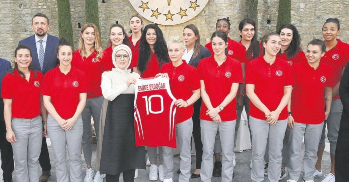 Cumhurbaşkanı Recep Tayyip Erdoğan'ın eşi Emine Erdoğan, Avrupa Şampiyonası'na katılacak Kadın Basketbol Takımı ile bir araya geldi. 27 Haziran'da Sırbistan'da başlayacak organizasyon öncesi Huber Köşkü'nde ay-yıldızlılara moral yemeği veren Erdoğan'a; kızları Esra Albayrak ile Sümeyye Erdoğan Bayraktar da eşlik etti. Yemekte Spor Bakanı Mehmet Kasapoğlu, Aile Çalışma Bakanı Zehra Zümrüt Selçuk ile Federasyon Başkanı Hidayet Türkoğlu da yer aldı.