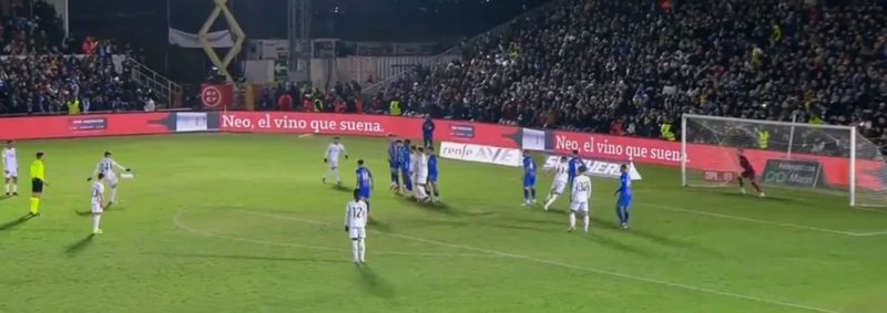 Frikik için topun başına geçen milli futbolcumuz Arda Güler, Ceballos'un frikiği kendisinin kullanmak istemesi üzerine topu takım arkadaşına bıraktı. Fakat daha sonra kenardan gelen uyarı sonrası frikiği genç oyuncu Arda Güler kullandı.