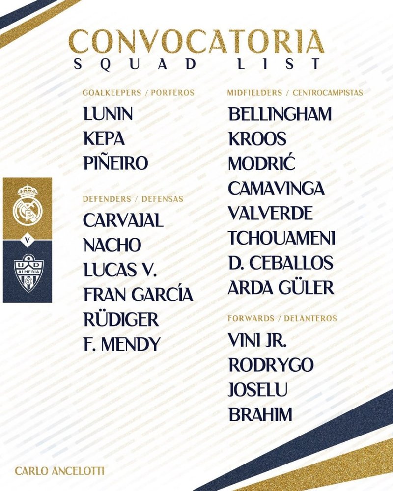 Milli futbolcu Arda Güler kadroda yer aldı.