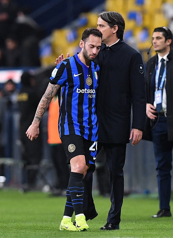 Inter forması giyen milli futbolcu Hakan Çalhanoğlu, yaşadığı sakatlık nedeniyle 35. dakikada oyundan çıktı