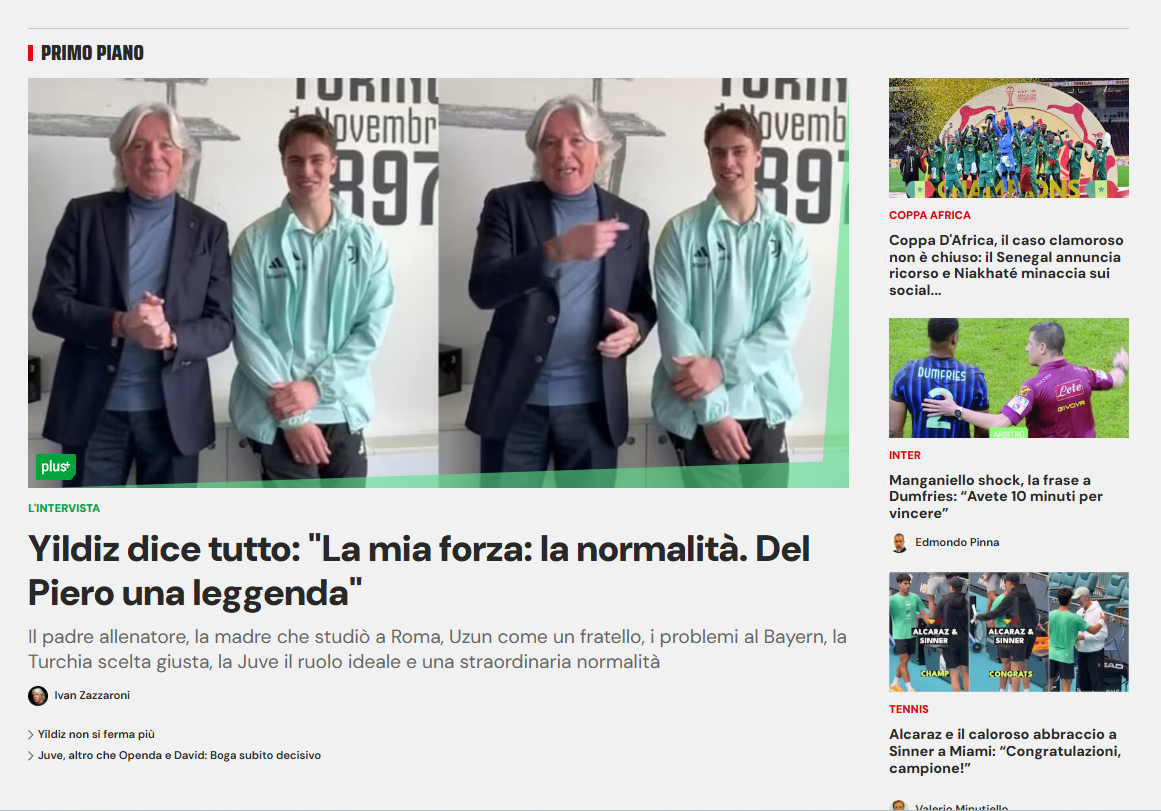 Juventus forması giyen milli oyuncu Kenan Yıldız, İtalya basınından Corriere dello Sport'a konuştu.
