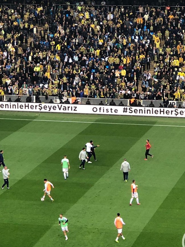 Galatasaray yardımcı antrenörü Hasan Şaş, sahaya çıktığında sarı-lacivertli taraftarlar, kendisine tepki gösterdi. Hasan Şaş, atılan su şişelerinden birini aldı ve Fenerbahçe'nin ısındığı yarı sahada içti.