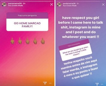 Marcao'nun eşi Pan Teixeira'nın sosyal medya hesabından yaptığı paylaşıma bir taraftar tepki gösterinde aralarında atışma yaşandı. Pan Teixeira'nın taraftara cevabı ise "Benim instagram hesabım, istediğimi paylaşırım" oldu.