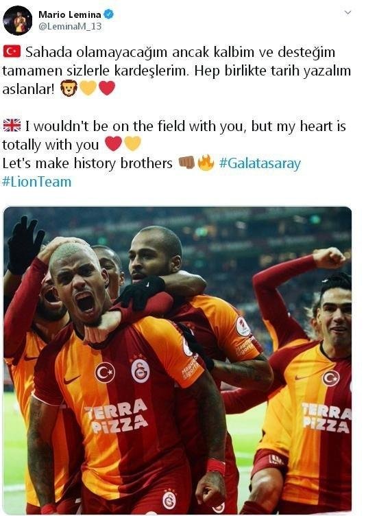 "Sahada olamayacağım ancak kalbim ve desteğim tamamen sizlerle kardeşlerim. Hep birlikte tarih yazalım aslanlar!"