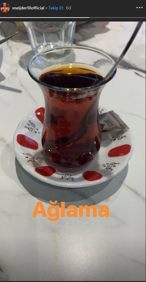 Cimbom'un eski futbolcu Wesley Sneijder de ağlama notuyla çay içtiği görseli sosyal medya hesabından paylaştı. İşte o görsel: