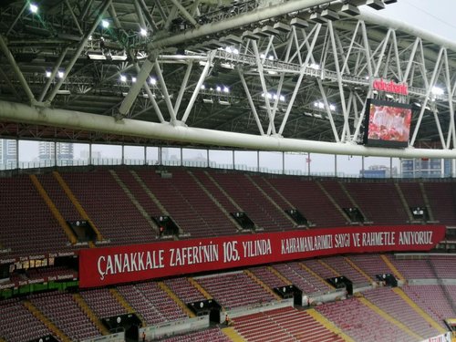 Galatasaraylı taraftarlar, bu kapsamda tribünleri 'Çanakkale Zaferi'nin 105. yılında kahramanlarımızı saygı ve rahmetle anıyoruz', 'Bir destandır Çanakkale', 'Söz konusu vatan ise gerisi teferruattır', 'Geri dönmeyi düşünmediler', 'Bir vatan kalbinin attığı yer 1915 Çanakkale' ve 'Mektebi Sultani şehitleri' yazılı pankartlarla donattı.
