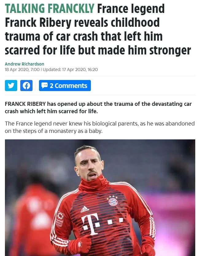 2 yaşındayken bir trafik kazası geçirdim. Yüzüme tam 100 dikiş atıldı. Bu yara izi bana karakterimi verdi ve beni güçlü kıldı. Çünkü eğer çocuksanız ve yüzünüzde böyle bir iz varsa hiç kolay değil. İnsanların size bakış şekli ve yorumları farklı oluyor. Bana bakıp, "Şunun yüzüne bakın, kafasına bakın" şeklinde yorumlar yapıyordu. Ben bu yara sayesinde iyi bir insan oldum, Franck oldum ve iyi bir futbolcu oldum. Bu kadar acıya rağmen asla bir köşeye çekilip de ağlamadım.