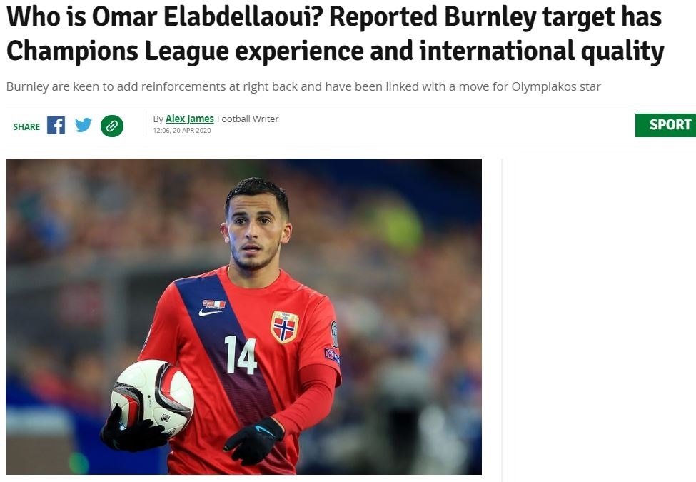 İngiliz basınında yer alan habere göre; Şampiyonlar Ligi tecrübesi bulunan bir sağ bek arayışında olan Burnley, Olympiakos'lu Elabdellaoui ile ilgilenmeye başladı. 28 yaşındaki oyuncunun Yunan ekibinde kilit oyuncu olduğuna dikkat çekildi. Haberde Burnley'nin bu transferde Galatasaray'a da rakip olduğunun altı çizildi.