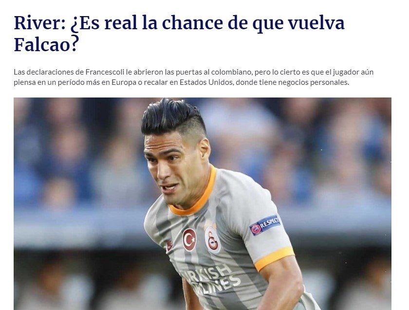 Fotomaç'ın dış basından derlediği habere göre; Falcao'nun, River Plate'e geri dönmeyi düşünmediği ifade edildi.