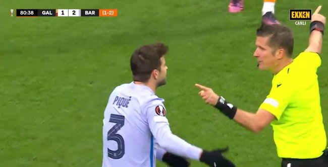 UEFA Avrupa Ligi Son 16 Turu rövanş maçında Galatasaray, sahasında Barcelona'yı konuk etti. İspanyol ekibi 2-1'lik üstünlüğünü korurken karşılaşmanın 81. dakikasında teknik direktör Xavi, Clement Lenglet'yi oyuna dahil ederken Pique'yi kenara aldı. Ağır adımlarla oyundan çıkan Pique'yi hakem uyardı.