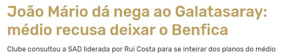 Portekiz basınında yer alan habere göre, Joao Mario, Benfica'da kalmaya karar verdi.