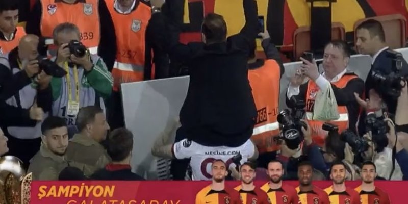 Sarı-kırmızılılarda şampiyonluğun ardından Arjantinli yıldız Mauro Icardi, kutlamalar sırasında teknik direktör Okan Buruk'u omzuna aldı.