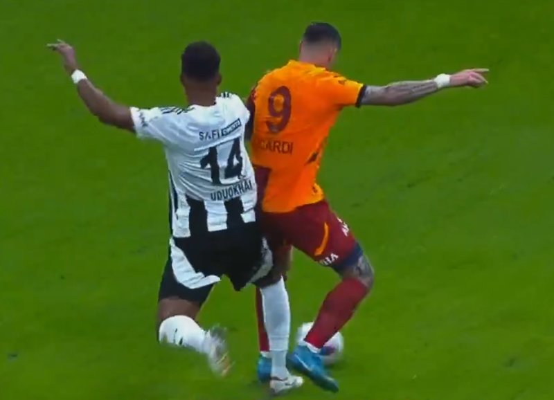 Dev derbinin 27. dakikasında Yunus Akgün'ün defans arkasına attığı topa koşan Mauro Icardi ceza sahasında Udokhai'nin müdahalesi sonrası yerde kaldı.