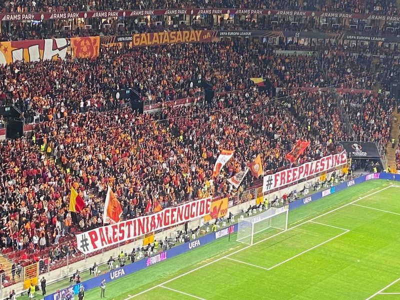 UEFA Avrupa Ligi 4. haftasında Galatasaray sahasında Tottenham'ı ağırladı. Sarı kırmızılı taraftarlar Gazze'de yaşanan insanlık dramı için pankartlarla dünyaya mesaj gönderdi.