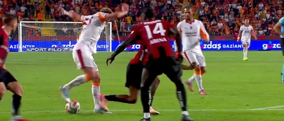 Sarı kırmızılılar 45+10. dakikada Barış Alper Yılmaz'ın yerde kalmasının ardından 2. defa penaltı kazandı.