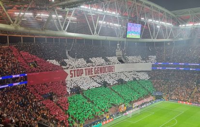 Sarı kırmızılılarda taraftarlar, Filistin'de yaşanan zulme dikkat çekmek adına Kuzey Tribünü'nde özel bir koreografi hazırladı.
