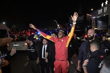 Süper Lig'in 12'nci haftasında Kocaelispor, yarın (9 Kasım) saat 17.00'da Turka Araç Muayene Kocaeli Stadyumu'nda Galatasaray'ı konuk edecek. Galatasaray kafilesi bu maç için, Kemerburgaz Metin Oktay Tesisleri'nden kara yoluyla Kocaeli'nin Başiskele ilçesinde konaklayacağı otele geldi. Sarı-kırmızılı taraftarlar, meşale ve tezahüratlar eşliğinde takımlarını coşkuyla karşıladı. Galatasaray'ın Nijeryalı yıldız santrforu Victor Osimhen ise yoğun istek üzerine taraftarlara üçlü çektirdi. (DHA)