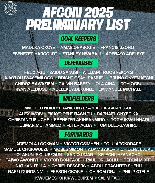 Afrika Kupası'nda mücadele edecek Nijerya A Milli Takımı'nın geniş kadrosu açıklandı.