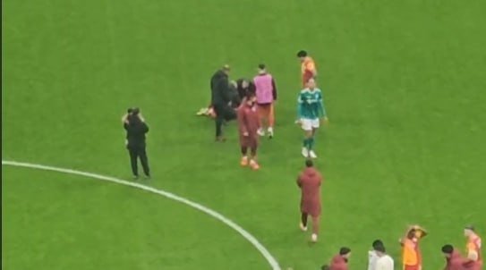 Nijeryalı golcü, maçın bitiminde kendini yere bıraktı. Bir süre sonra ayağa kalkan Osimhen'in beline darbe aldığı tahmin ediliyor.