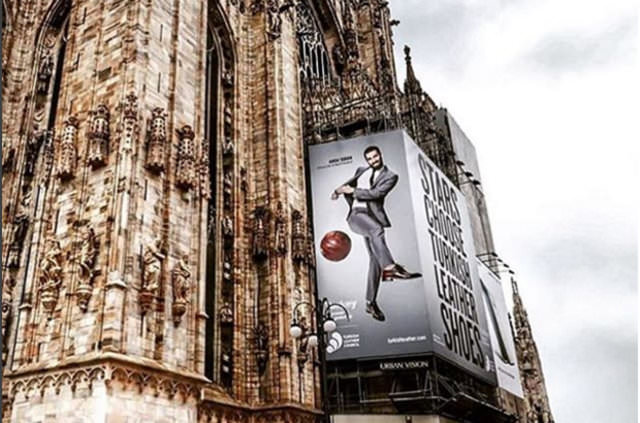 Bir deri firmasının reklam yüzü olarak gösterilen milli futbolcu, modanın başkenti Milano'da asılan posterini kendi İnstagram hesabından paylaştı.