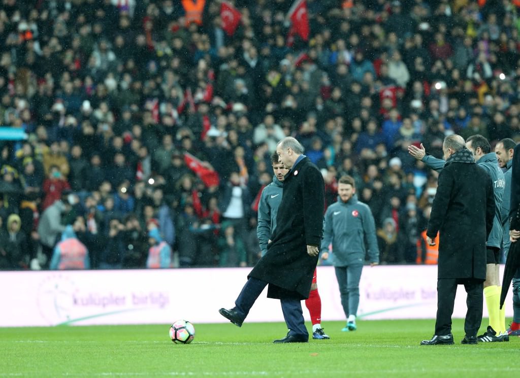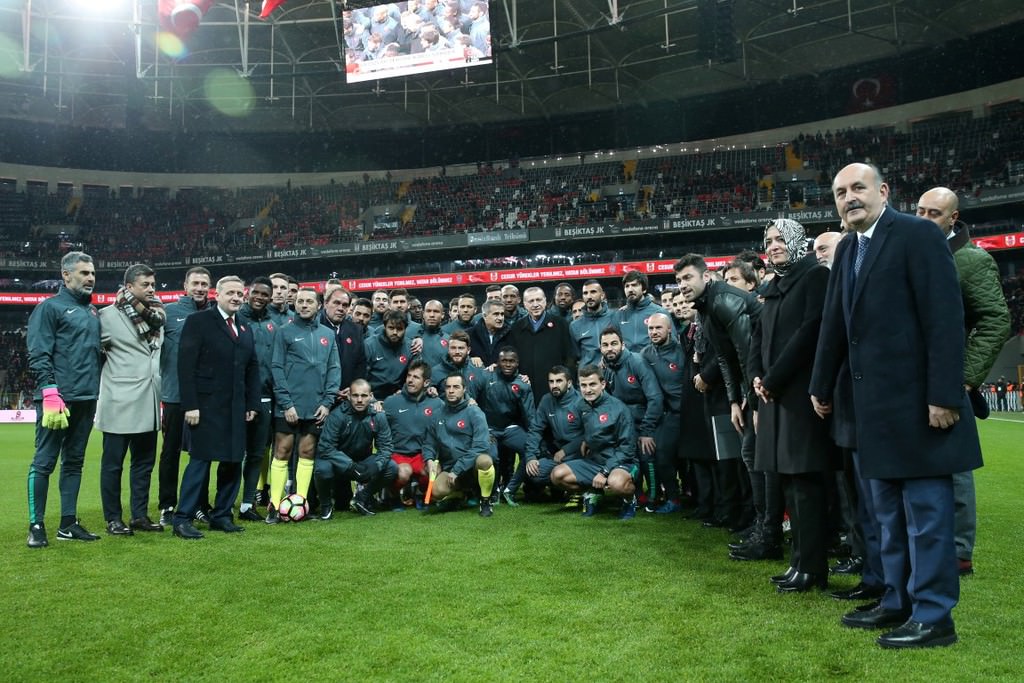 Futbol ailesi, son dönemde yaşanan terör saldırılarına karşı ortak bir duruş sergilemek amacıyla Cumhurbaşkanı Erdoğan himayesinde 'Şehitlere saygı maçı'nda bir araya geldi. . Türkiye Futbol Federasyonu ve Kulüpler Birliği Vakfı başta olmak üzere futbol ailesi, Türkiye'nin son dönemde maruz kaldığı terör saldırıları karşısında milletin yanında olduğunu göstermek ve teröre karşı ortak bir duruş sergilemek amacıyla Cumhurbaşkanı Recep Tayyip Erdoğan himayesinde 'Şehitlere saygı maçı'nda bir araya geldi. . Cumhurbaşkanı Erdoğan'ın teşrif ettiği maça, Spor Toto Süper Lig ve TFF 1. Lig'de mücadele edecek kulüplerin başkanlarının tamamı katılım gösterdi. Ayrıca, organizasyonda şehit aileleri, askerler, polisler, sanatçılar, sivil toplum kuruluşlarının temsilcileri, iş adamları gibi her kesimden izleyiciler yer aldı. Organizasyonun sponsorluk gelirleri, bağışlar ve yayın haklarından elde edilecek gelirler, Aile ve Sosyal Politikalar Bakanlığı aracılığıyla şehit ailelerine bağışlanacak. .