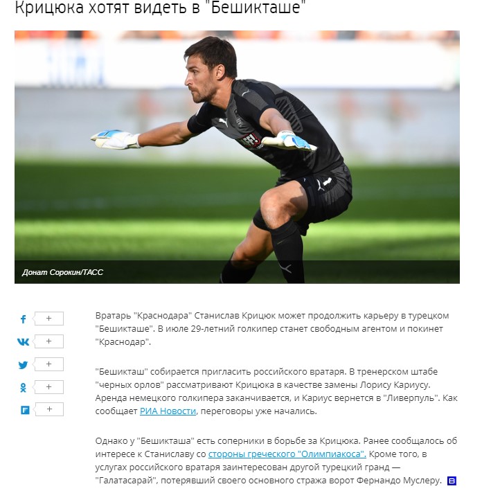 "Beşiktaş'ta Kritsyuk'u görmek istiyorlar. Krasnodar kalecisi Stanislav Kritsyuk, kariyerine siyah beyazlılarda devam edebilir.