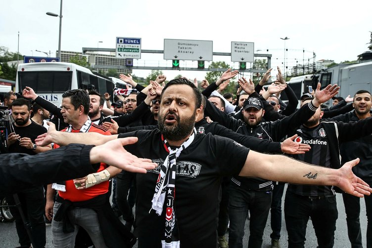 Galatasaray ile Beşiktaş arasında oynanacak olan derbi mücadelesi öncesinde Vodafone Park'ta toplanan Beşiktaşlı taraftarlar yaklaşık 30 otobüsle Türk Telekom Stadyumu'na geldi.