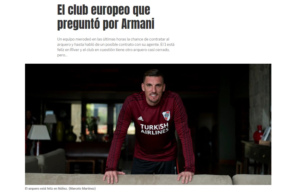Beşiktaş'ın bu transfer için girişim yapması oldukça olağan ancak bunun için en büyük engel transfer maliyeti. River'a geldikten 5 ay sonra Armani'nin güncellenen kontratında, 20 milyon dolarlık satın alma opsiyonu koyulmuştu. Bu miktar bütünüyle transfer için zorunlu olmasa da Arjantin kulübü, yüksek bir rakam isteyecektir.