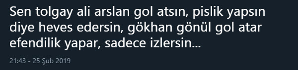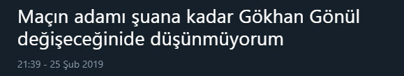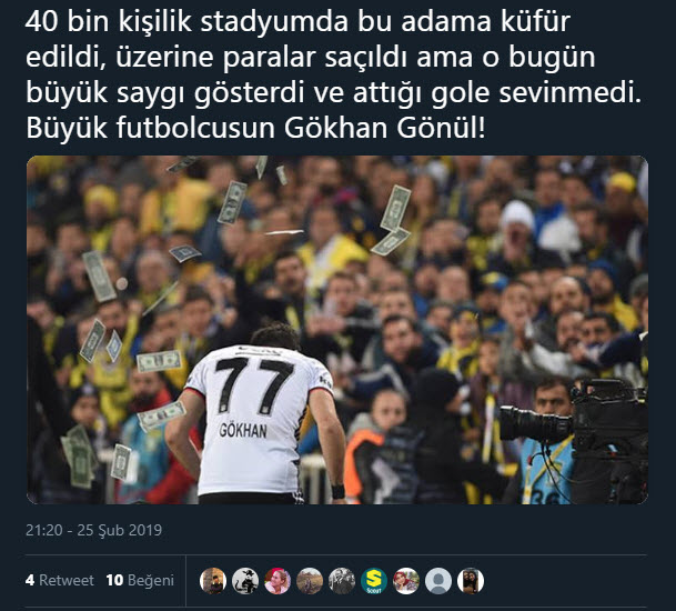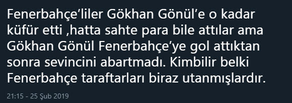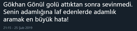 Spor Toto Süper Lig'in 23. haftasında Beşiktaş ile Fenerbahçe arasında oynanan karşılaşmaya Gökhan Gönül'ün attığı gol sonrasında sevinmemesi damga vurdu. İşte sosyal medya kullanıcılarının Gökhan Gönül'e yorumu...