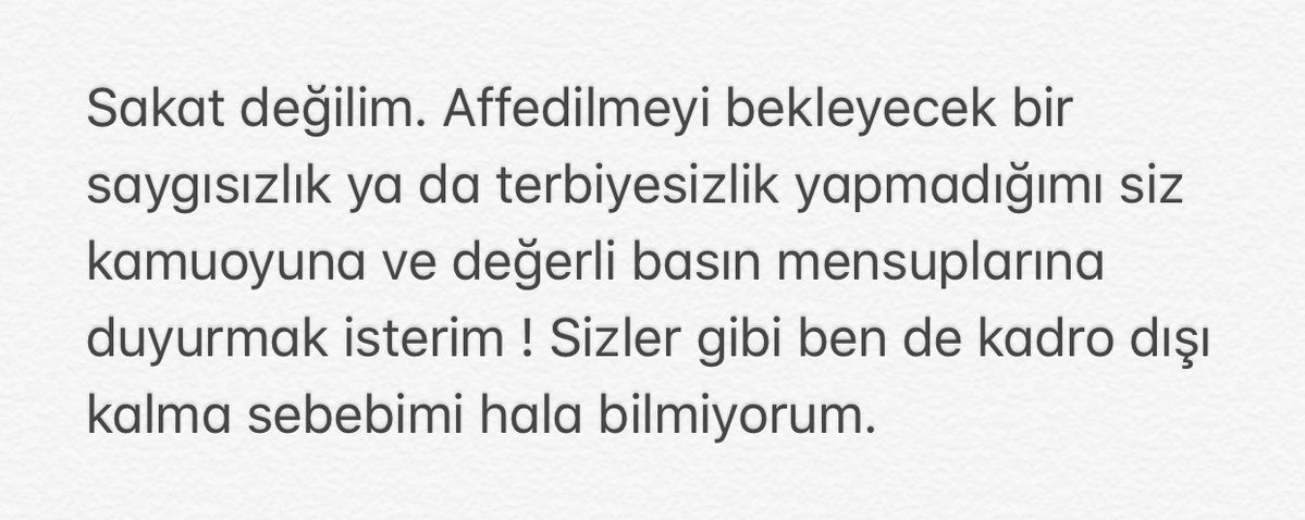 Sosyal medya hesabından bir dizi paylaşım yapan Gökhan Töre durumuyla ilgili konuştu ve "Sakat değilim. Kadro dışı kalma sebebimi sizler gibi ben de hala bilmiyorum" dedi.