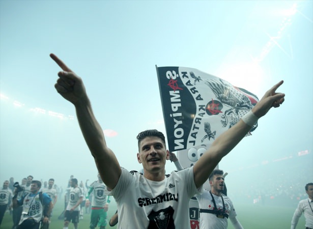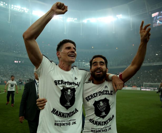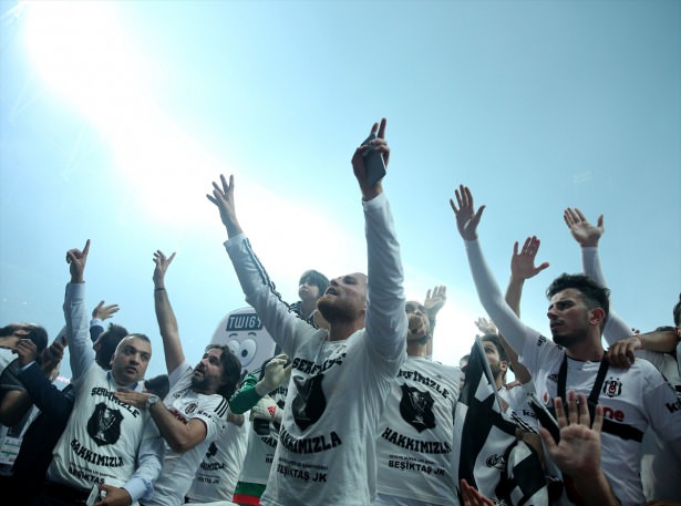 Siyah-beyazlılar, tribünleri tek tek gezerek şampiyonluk sevincini taraftarlarıyla paylaştı. Futbolcular, taraftarlarla karşılıklı tezahürat da yaptı.