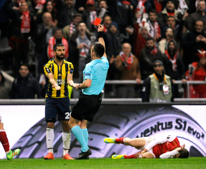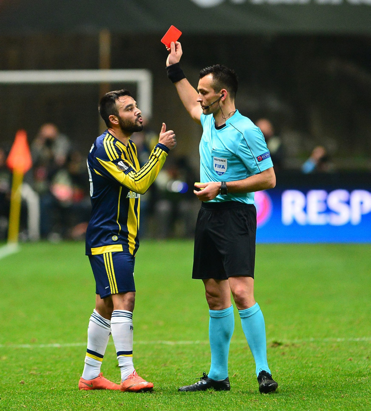 Maçın Litvanyalı hakemi GediminasMazeika, karşılaşmanın 44. dakikasında Jeremain Lens'in orta sahada yaptığı müdahalenin ardından kırmızı kartına başvurdu.