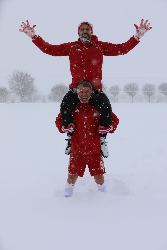 Kırmızı-beyazlılar idmanın ardından yoğun kar yağışının tadını çıkardı. Karın üzerinde gönüllerince eğlenen futbolcular bol bol fotoğraf çektirdi.
