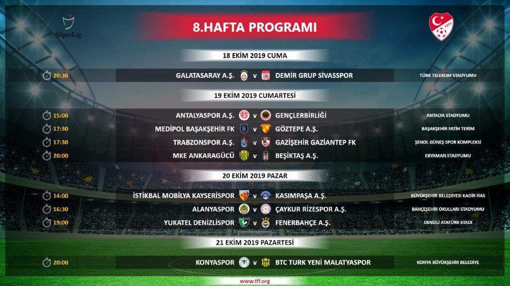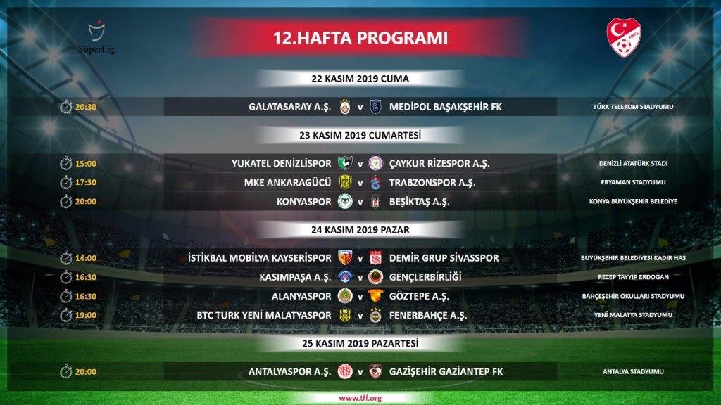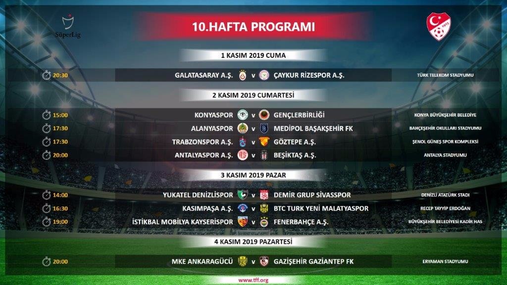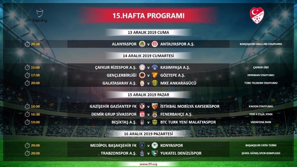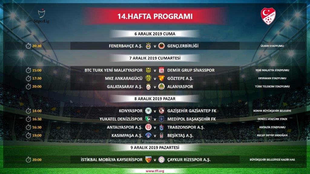 Türkiye Futbol Federasyonu Süper Lig 4 - 17. hafta maçlarının tarihlerini açıkladı. Buna göre derbi tarihleri ve saatleri de belli olmuş oldu.